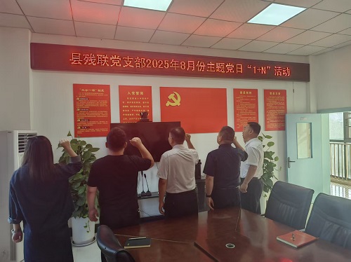 2025年8月11日,县残联党支部组织开展8月主题党日“1+N”活动。 会议以领学方式认真学习了习近平总书记在中共中央政治局第二十一次集体学习时的重要讲话精神和习近平总书记对防汛救灾工作作出的重要指示精神,传达学习了有关重点工作提示,总结回顾了深入贯彻中央八项规定精神学习教育以来开展的各项工作。 党支部书记王帅带领全体党员重温入党誓词,随后全体党员缴纳了8月份党费。