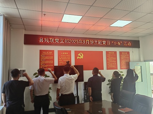 9月9日,县残联党支部开展9月份主题党日“1+N”活动,全体党员佩戴党徽,交纳党费,重温入党誓词,开展集体学习。 全体集体学习习近平总书记在纪念中国人民抗日战争暨世界反法西斯战争胜利80周年大会上的重要讲话,庄严重温入党誓词,大大激发了党员的爱党爱国热情,激发了强烈的民族自豪感。大家纷纷表示,要在新时代继承和弘扬伟大抗战精神,铭记历史、缅怀先烈,以伟大抗战精神为引领,凝聚中心全体党员干部合力,以坚定的理想信念面对工作中的各种困难与挑战。